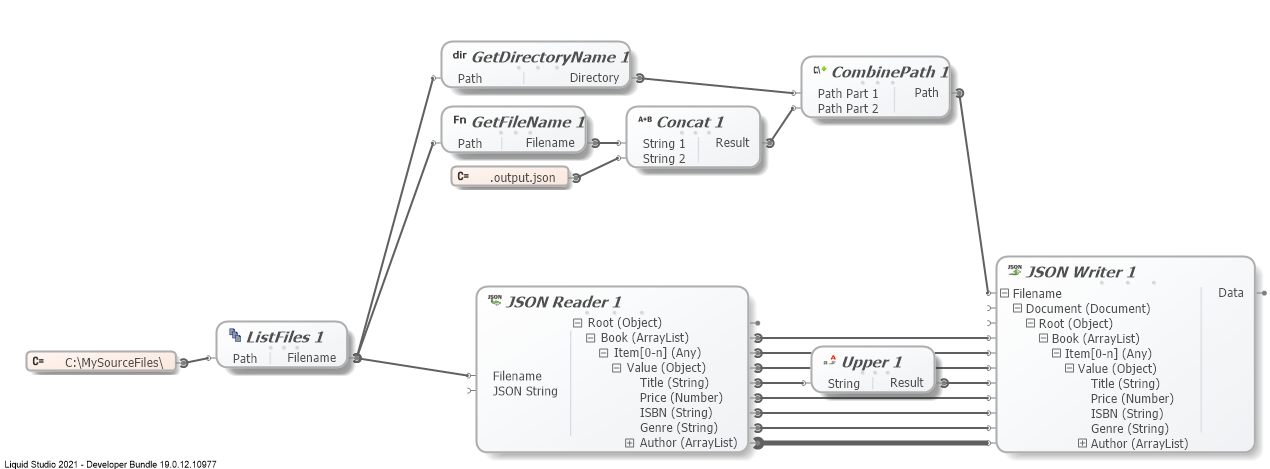 If you know the names of the files up front then you can add the file names in as constants and then combine them into a sequence, which you feed into your JSON reader. If you require an output file for each input file, then you can use the source filename to build the output filename (in the example if the input file is c:\Source1.json, the output would be c:\Source1.output.json - note GetFileName has an option to remove the extension).