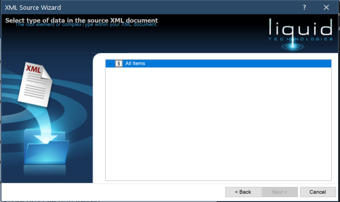 Wizard stops on "Select type of data in the source XML document"